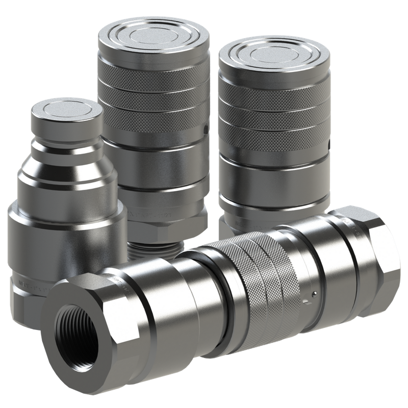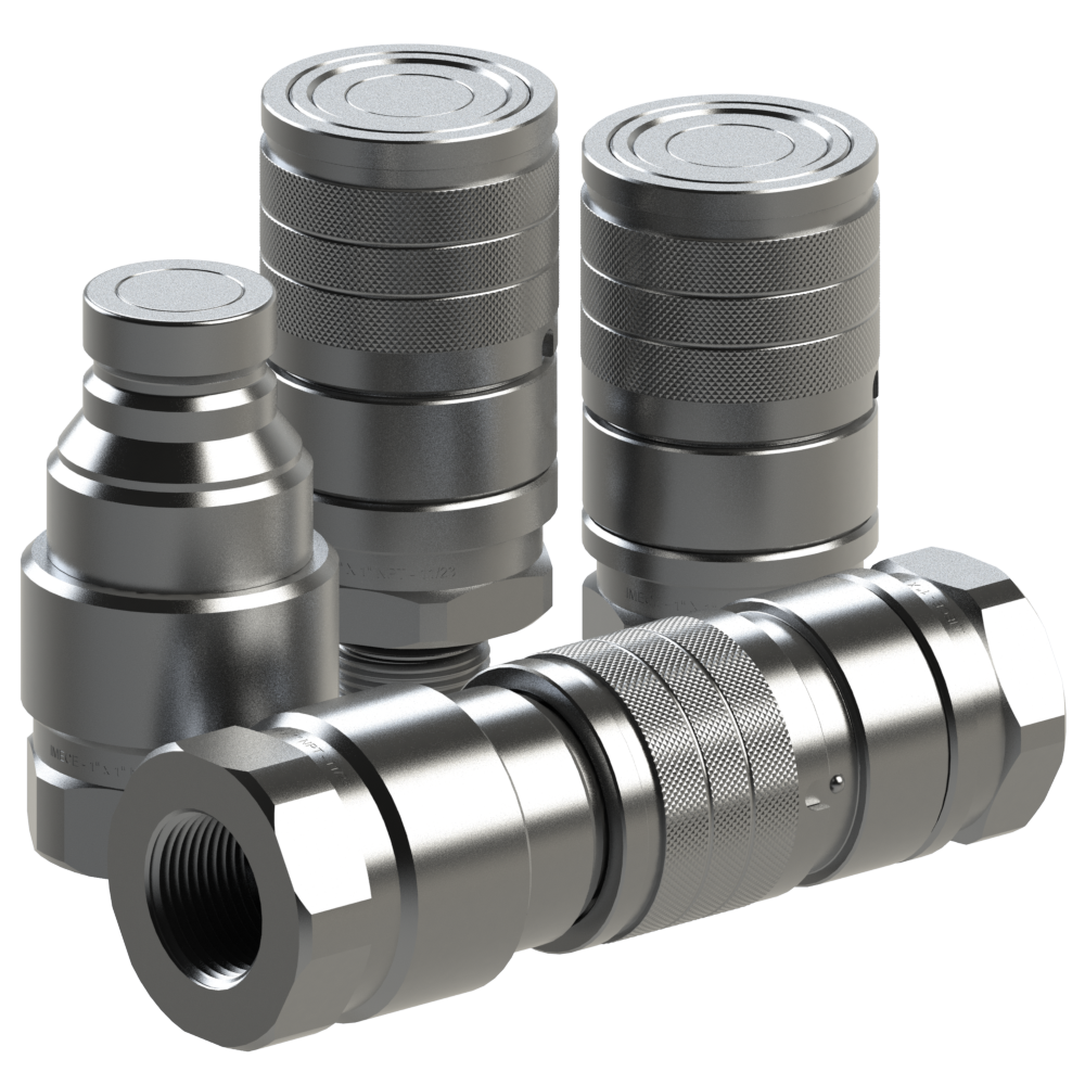 Hydraulická rychlospojka řady 1' Flat-Face, dostupná se závitem 1' NPT a M30x2mm. Připojte zatlačením na zástrčku pod tlakem; odpojte vyrovnáním kulového pouzdra a zatažením objímky. Má povrchovou úpravu trojmocného zinku, aretaci pomocí leštěných ocelových kuliček, PTFE antiextruzní kroužky a těsnění NBR (nitrilkaučuk).